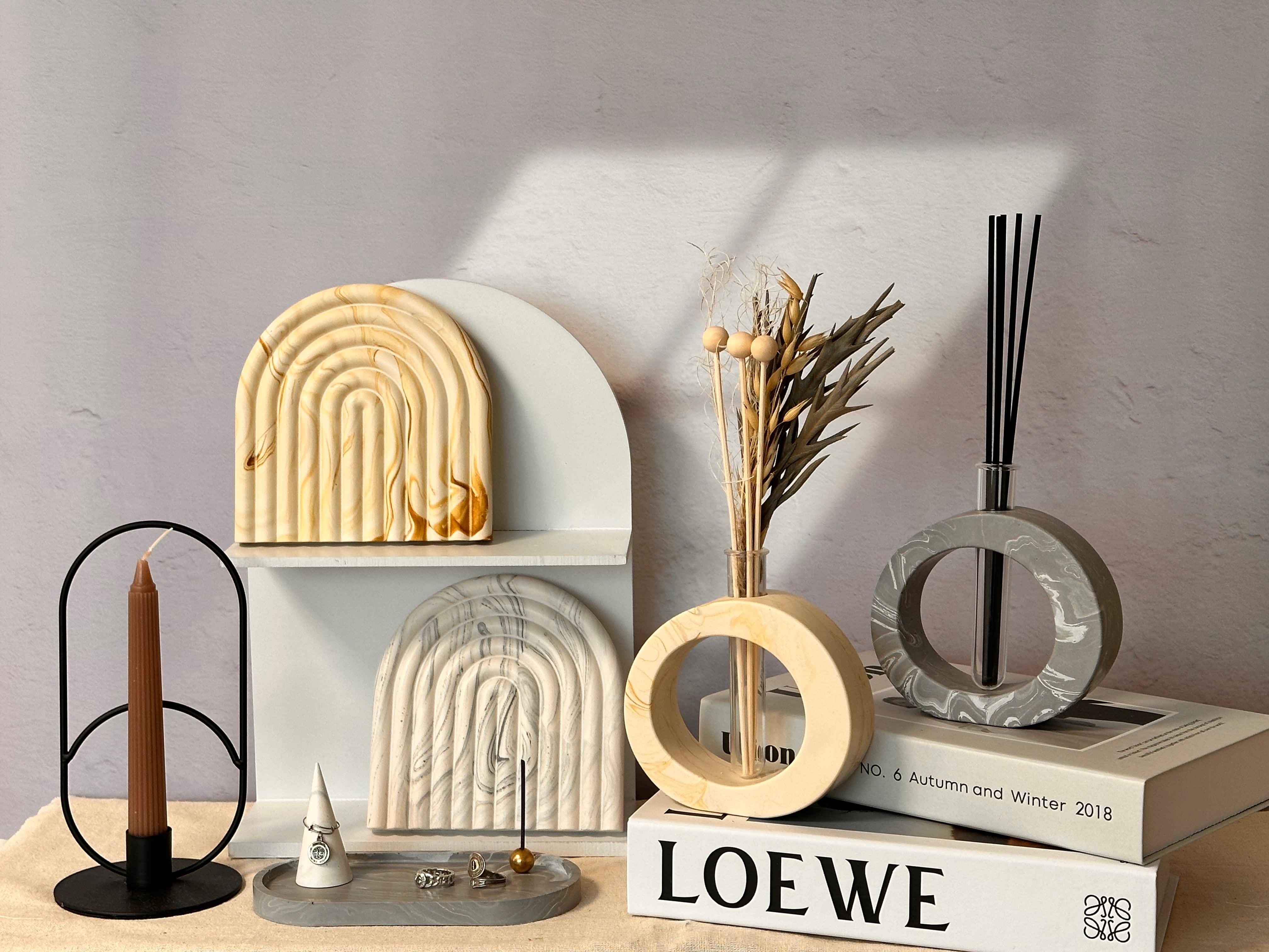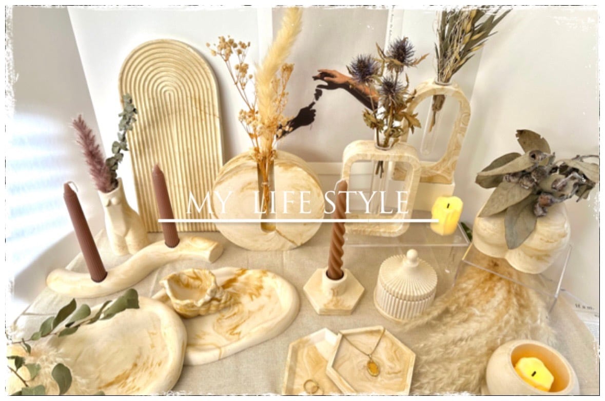 素材がすべてを包み込み独特の空気感が蓄積。新たにさまざまなモノと色が融合することでここにしかない唯一無二を生み出す“アート性”を兼ね備えたのが『 Jessmarble 』の作品です。